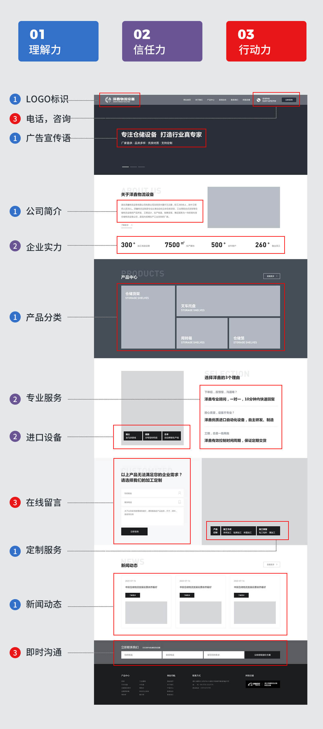 我们建站会结合行业产品定位优势分析等来对以上2点进行包装,无限放大公司优势。